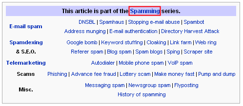 The way I see it in the "The article is part of the spamming series" is that while it does say SEO and spamming in the same box, it does not mean that SEO is spamming. It means SEO can be spamming, and there is a type of spamming that is also SEO.