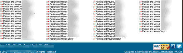 Excessive keyword repetition like the footer with the phrase repeated 100 times.