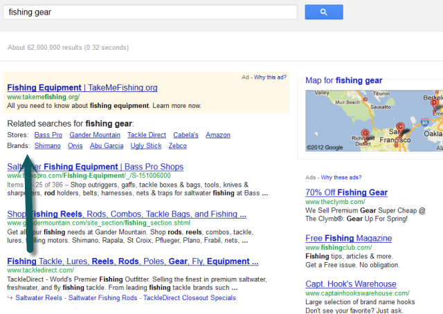 If you search for "fishing gear" and then click their Bass Shop refinement link in the search results, you are thus directly creating that search funnels relevancy "signal." Even if you don't click on that link the exposure to the term may make you remember it and search for it later.