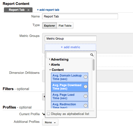 Creating the custom report is easy. You choose from a drop-down menu of metrics and dimensions that you're interested in segmenting your report by.