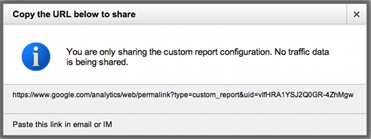 Another great feature of custom reports is your ability to use them cross-profile and to share them. To share a report, all you need to do is click the Actions drop-down menu from the Custom Reports overview page, and click share. You will then be able to share the configuration (not the data) of the custom report you just created.